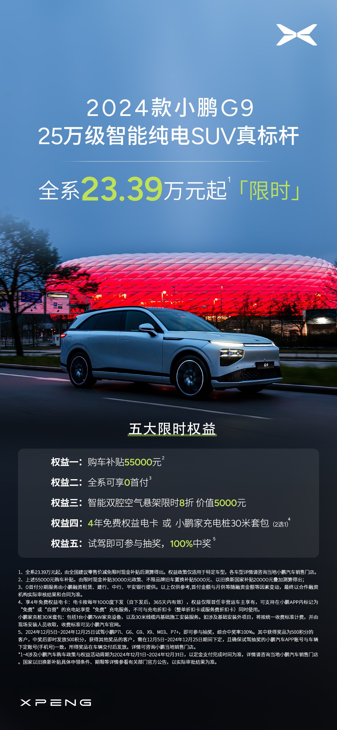 不僅如此,小鵬G9現(xiàn)已開啟“雙十二”史上最大鉅惠政策,至高可享6萬元補(bǔ)貼,全系23.39萬起售的價(jià)格,非常適合年底想要“抄底”入的小伙伴們。那么究竟小鵬G9買哪款配置更合適呢?咱們今天分析一波!