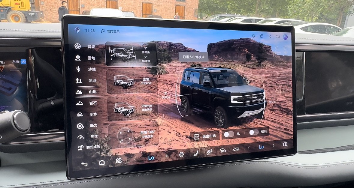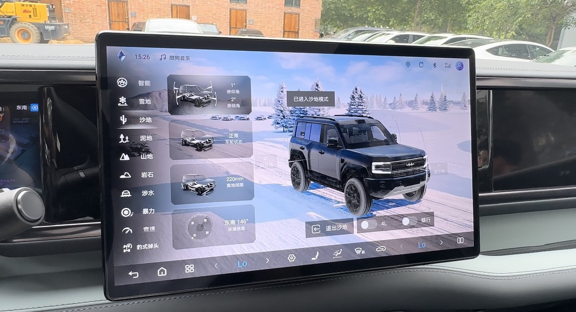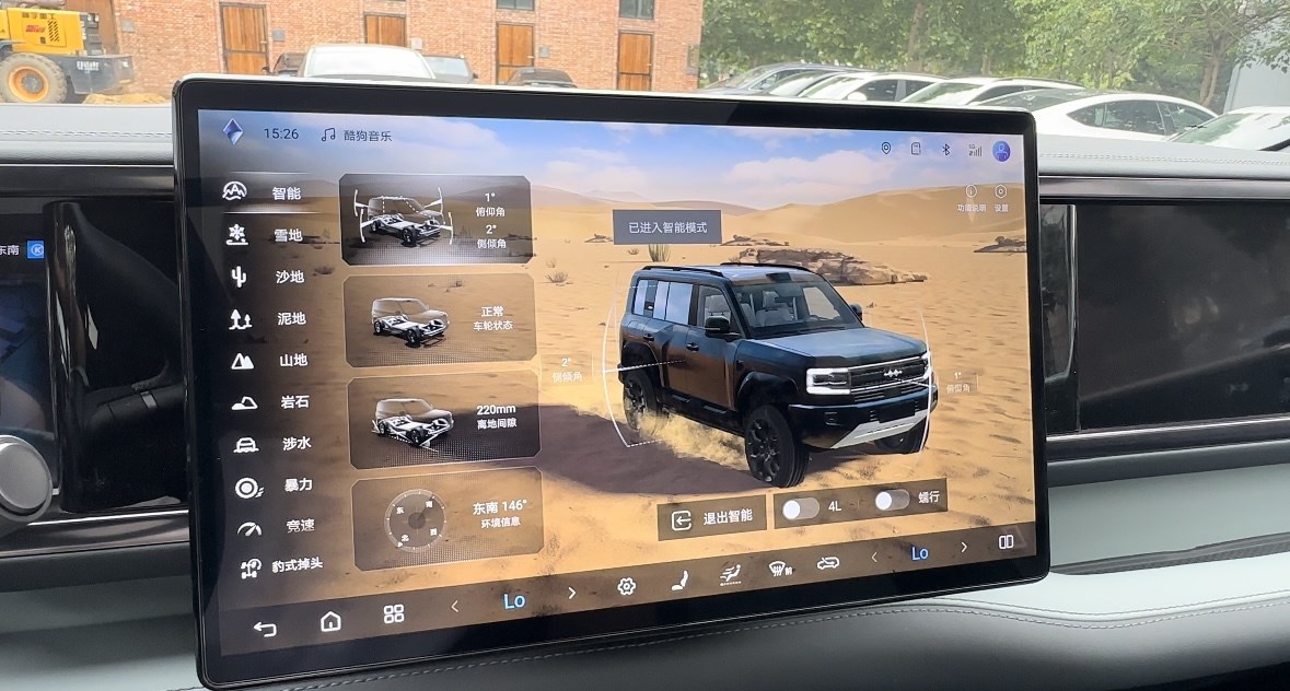 在駕駛模式方面,新車擁有多種模式,智能、雪地、沙地、泥地、山地、巖石等等,每一次駕駛模式的切換,不僅僅是轉(zhuǎn)向、油門上的變化,屏幕上也會進入到相應(yīng)的情景模式當中,彷佛如臨其境一般,情緒價值直接拉滿。